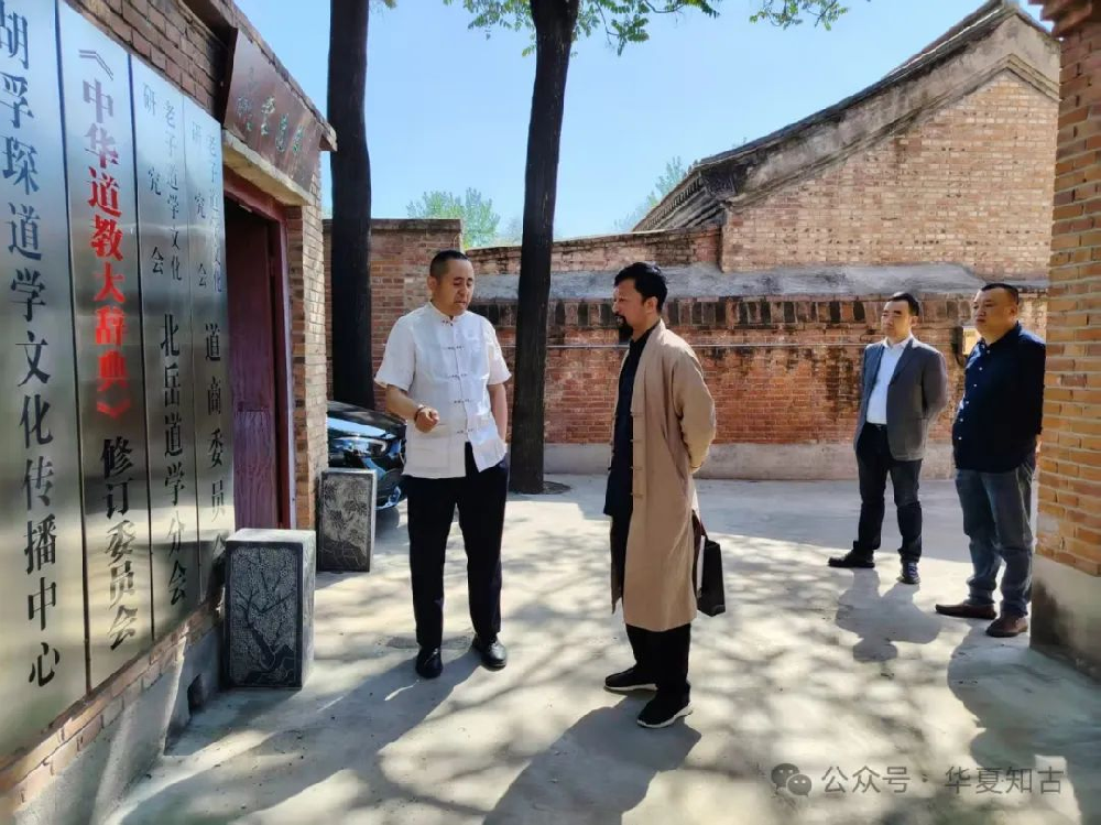 老子道学文化研究会一行4人拜会北京佑民观主持刘崇尧道 4月21日,老子道学文化研究会会长助理刘高奇,北岳道学分会常务副会长唐祖玉、秘书长张铁钢、副秘书长王昆一行4人拜会北京市道教协会所属佑民观,与北岳道学分会创会会长、佑民观主持刘崇尧道长进行深入交流,双方就新道学思想研究、道教文化